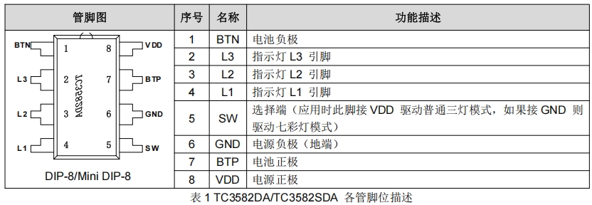 封裝形式:COB、DIP-8(TC3582DA)、Mini DIP-8(TC3582SDA)