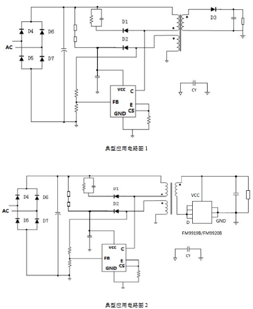 FM3783GA/FM3783GB的典型應(yīng)用電路簡單明了,外圍元件少,便于設(shè)計(jì)和調(diào)試。以下是其典型應(yīng)用電路示意圖: