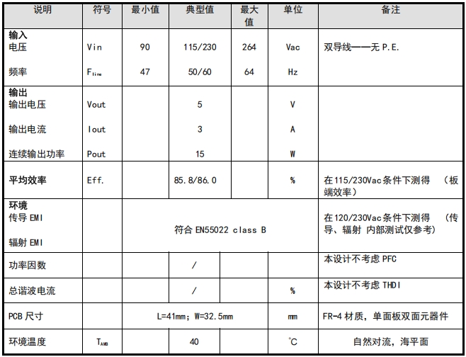 下表給出的是設(shè)計(jì)的最低可接受指標(biāo),實(shí)際性能在后續(xù)的測(cè)試結(jié)果部分給出。