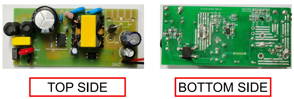 背面則主要布置了反饋控制電路和輸出濾波電路的元件,如光耦 PC817C、TL431、電解電容 E3 和 E4 等。通過(guò)合理的元件布局和走線設(shè)計(jì),電路板在有限的空間內(nèi)實(shí)現(xiàn)了高效的信號(hào)傳輸和電源轉(zhuǎn)換,同時(shí)保證了良好的散熱性能。