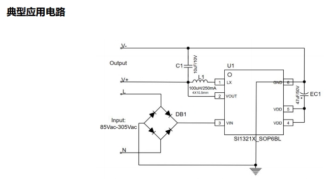 SI1321X系列芯片設(shè)計(jì)注重緊湊性與易用性,兼容CD32/43貼片電感和0410色環(huán)電感,無(wú)需額外的π型濾波或安規(guī)電容即可滿足EMI標(biāo)準(zhǔn),大大簡(jiǎn)化了電路設(shè)計(jì)。此外,輸入端免去了高壓電解電容的使用,進(jìn)一步降低了成本和體積,使得該芯片在空間受限的應(yīng)用場(chǎng)景中更具優(yōu)勢(shì)。