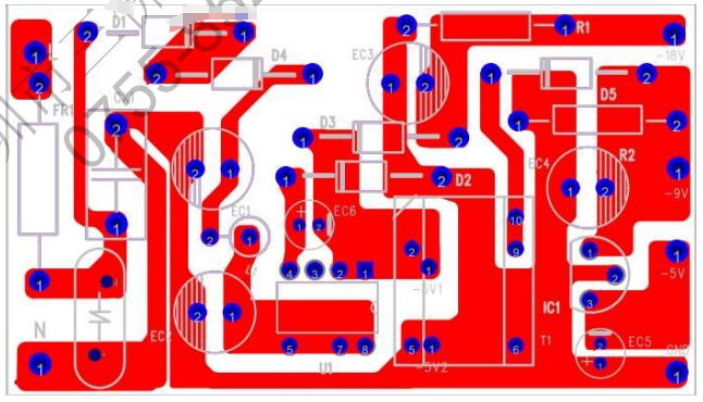 PCB設計對于電源的性能和穩(wěn)定性至關重要。本方案采用單面板設計,元件分布合理,布線簡潔明了。以下是PCB的頂面和底面布局圖: