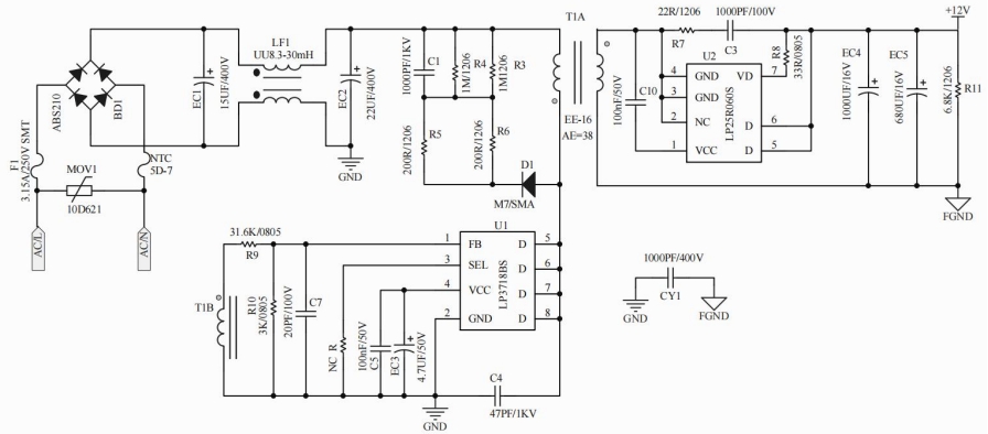 在當今電子設備日益普及的時代,電源適配器作為設備的“能量源泉”,其性能和穩定性至關重要。本文將詳細介紹一款基于LP3718BS與LP25R060S芯片的12V1.5A電源適配器方案,重點闡述其電路設計、性能特點以及測試驗證過程,旨在為電源設計工程師及相關技術人員提供一個高效、穩定且符合標準的參考方案。