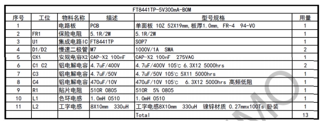 FT8441TP 是一款專(zhuān)為小家電輔助電源設(shè)計(jì)的高性能非隔離式開(kāi)關(guān)電源芯片,能夠提供高精度、高效率的恒壓輸出。本文將詳細(xì)介紹基于 FT8441TP 的 5V300mA 電源芯片 DEMO 板的參考設(shè)計(jì),涵蓋其特點(diǎn)、電源規(guī)格、電路原理圖、PCB 布局以及物料清單等關(guān)鍵信息。