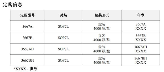 3667B/BH:適用于較高功率的適配器和充電器,以及需要較大輸出電流的應用場景。