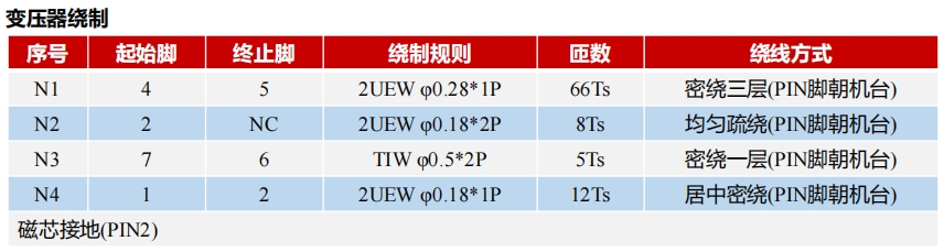 • 繞組線材:N1、N2、N4采用2UEW漆包線;N3采用三層絕緣線。