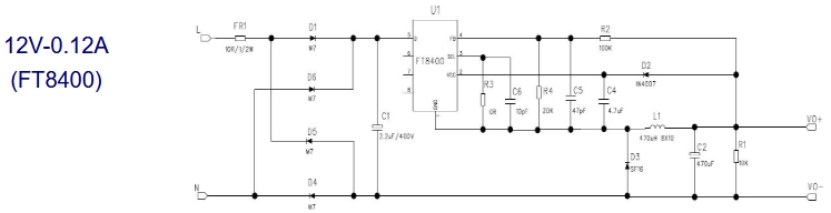 FT8400、FT8410高效能AC-DC恒壓芯片5V12V電路原理圖及能效測試