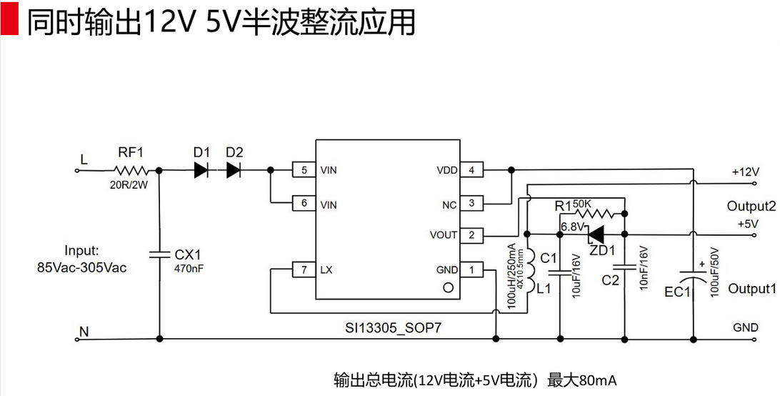 把220V交流變成3.3V或5V,還能塞進指尖大小的空間,并且待機功耗低于一顆LED,是什么體驗?SI13303/SI13305這對SOP-7封裝的“非隔離降壓兄弟”把高壓MOSFET、過零檢測、過溫/過壓/限流保護全部集成在一顆芯片里,外圍僅需5顆通用料即可工作,被工程師戲稱為“史上最省事的市電電源”。