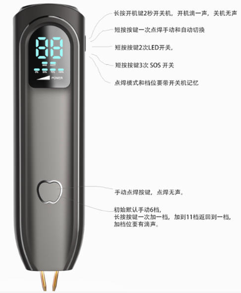 任何模式下連續(xù)短按2次,開關(guān)照明LED,方便昏暗環(huán)境對(duì)準(zhǔn)焊點(diǎn),狀態(tài)掉電記憶。