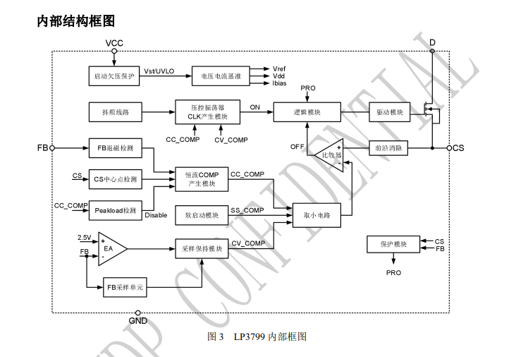 LP3799BAB 內(nèi)部集成大于 650V 高壓功率管,采用特有的檢測(cè)方式和算法,系統(tǒng)可以工作在恒壓和恒流兩種狀態(tài)。