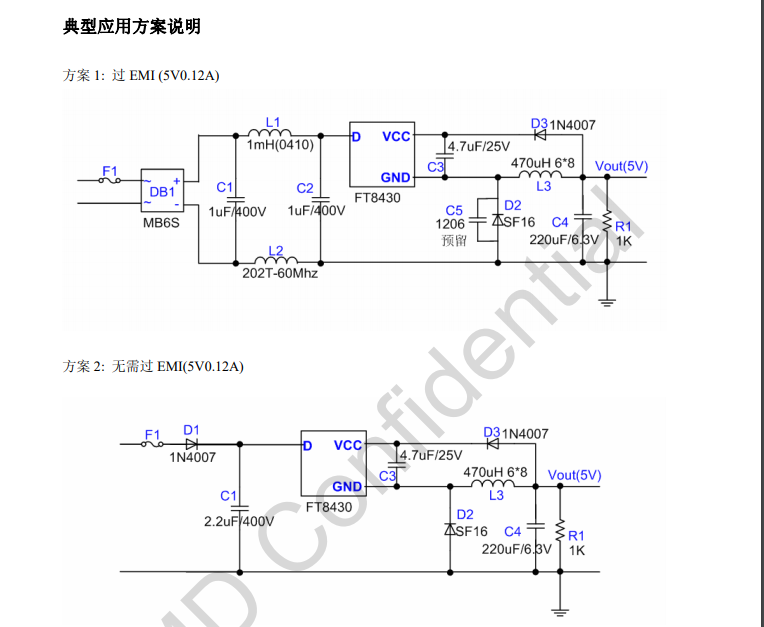 FT8430采用超高壓工藝,內(nèi)部集成高壓啟動電路,高壓功率開關(guān),以及電流采樣電阻,減少了外部元器件,極大地簡化了系統(tǒng)應用。內(nèi)置的頻率抖動和軟驅(qū)動設(shè)計能有效提高EMI性能。