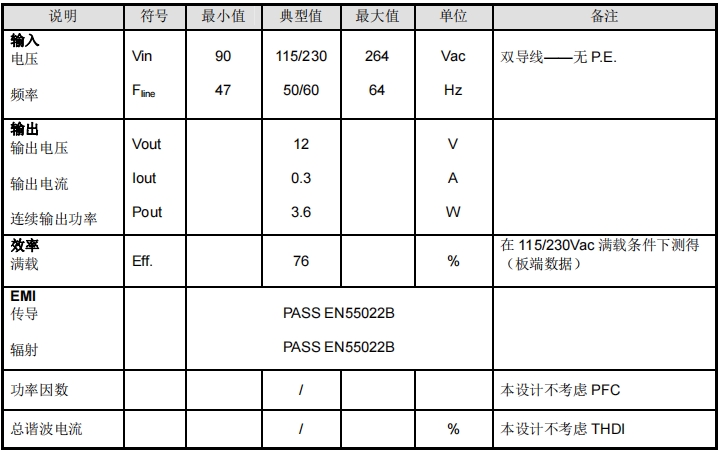 下表給出的是設(shè)計(jì)的最低可接受指標(biāo),實(shí)際性能在后續(xù)的測試結(jié)果部分給出。