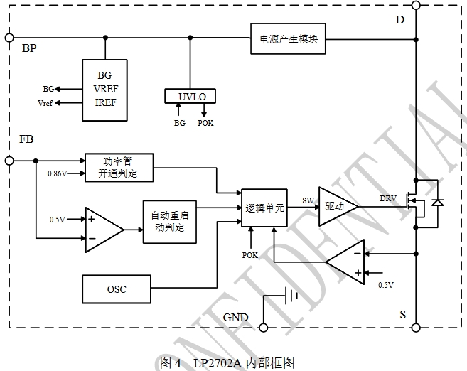 為了確保電源的穩定性和安全性,LP2702A集成了多種保護功能,包括過壓保護(OVP)、欠壓保護(UVP)、過流保護(OCP)和短路保護(SCP)。