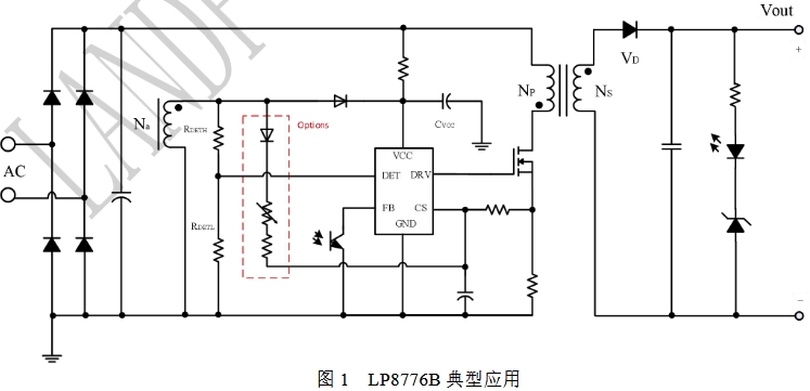 LP8776B是一款適合于副邊控制反激應(yīng)用的隔離型恒壓PWM控制器,它采用特有的高低壓輸出電流補償方式,使得輸出過流電流不隨輸入電壓變化。LP8776B具有多模式恒壓控制方式,包括峰值電流控制模式、過載時升高頻率提高過載輸出電流的Peak Load功能,以及在輕載或空載時工作的打嗝模式。此外,LP8776B還采用了頻率抖動技術(shù)來改善EMI指標(biāo),并具有多重保護功能。