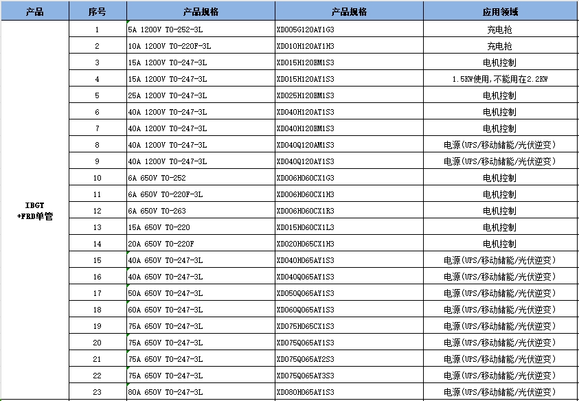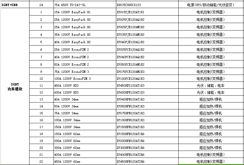 根據(jù)深圳市三佛科技有限公司提供的芯達茂系列目錄,以下是一些國產(chǎn)IGBT的型號規(guī)格: